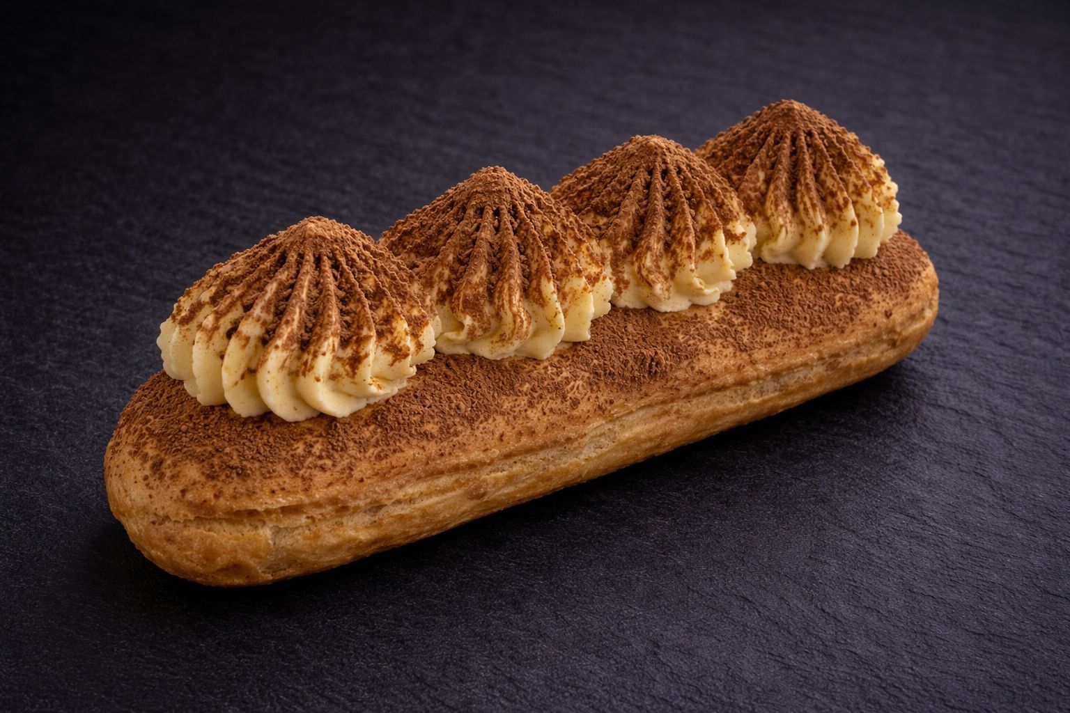 El Éclair Tiramisú de Chef Laurent es una reinterpretación moderna del clásico italiano, en formato éclair.